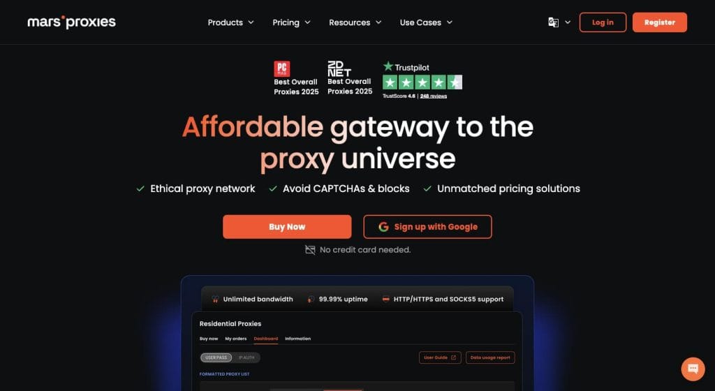 Voted best proxy provider by PCmag in 2025, MarsProxies gives you exactly what a working marketer needs: choice, speed, and scale. You get over one million IPs across 190 countries. Residential, datacenter, mobile, ISP, sneaker proxies – pick what works.